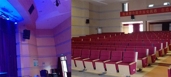 多功能廳,主要用于召開各類會議、教學培訓、觀看電影、舉辦中小型文藝演出等活動。而階梯式多功能廳由于受環境布局影響,天花高度相對較低,觀眾席采用階梯式布局,宜選用體積較小揚聲器,四只6寸線陣音箱吊掛則是不錯的選擇。爵士龍音響廠家已幫助眾多企事業單位、政府機關、學校等提供階梯式多功能廳音響方案,建立完善的專業音響系統。
