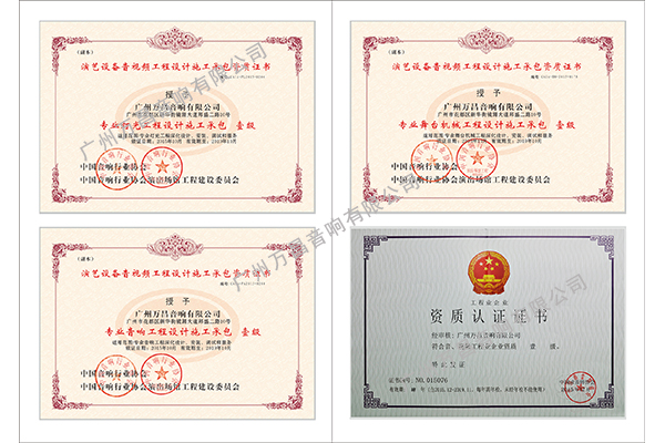 廣東音響工程公司必備哪些工程資質和產品證書?不做投標工程的朋友們可能不太了解,但對于萬昌廣東音響工程公司來說,卻是如數家珍,因為萬昌音響工程公司不但是一家大型的音響生產廠家,更是一家專業做投標工程的音響工程公司,下面由小編來介紹一下萬昌音響工程公司都具備哪些工程資質和產品證書。