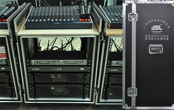 廣東省樂昌文廣新局為建設(shè)市里17間鎮(zhèn)級綜合文化站,向爵士龍音響廠家購置17套文化下鄉(xiāng)設(shè)備,每一套設(shè)備包括雙十五寸主音箱及功放、十二寸輔助音箱及功放、真分集無線話筒、調(diào)音臺、反饋抑制器、DVD播放機(jī)等設(shè)備。爵士龍音響廠家全程協(xié)助市政府開展配送工作,將17套設(shè)備送到基層手上,并授課傳授調(diào)音技巧。