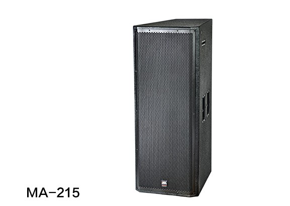 JSL三分頻舞臺音響設備MA-215低頻驅動單元:2x15(in)200磁75芯,頻響:40Hz-20kHz(±3dB),阻抗:4ohms,額定功率:1000w,持續聲壓:124dB,尺寸:475x620x1191mm,重量:61kg