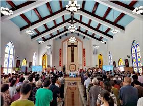 7月3日,無錫市天主教厚橋天主堂舉行建堂二十周年慶典暨本堂主保瞻禮活動。此次瞻禮感恩彌撒由天主教南京教區陸新平主教主祭,來自南京教區的20余位神父共祭;南京教區修女院及教友信眾共計400余人參與此次慶典。