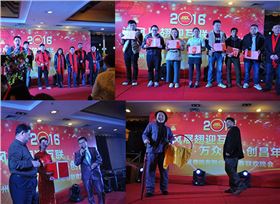 此次晚會也是2015年年度優秀員工表彰大會,項目部團隊、開發技術工程師李工、石工、生產車間多名技術員工因表現出色,為公司帶來很多技術創新,因此獲得獎勵。