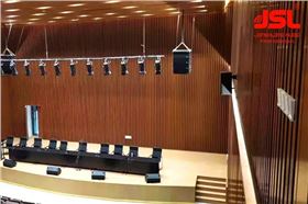 爵士龍團隊經過對本廳的使用功能分析,考慮使用的音響設備、場地容積等因素,選用了JSL雙八線陣音響作為主音箱,該產品聲壓疊加,衰減小,傳輸遠,精準投射,擁有良好的聲場分布和穩定的聲音傳遞,可為多功能廳使用者提供優質體驗。