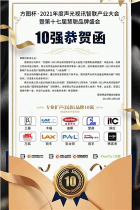 【喜訊】恭喜JSL爵士龍入選方圖杯·2021聲光視訊行業品牌評選專業擴聲10強!
