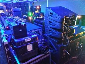 STM系統在月亮舞臺上使用了12只M46主模組和12只B112低頻音箱吊掛在兩邊,在地面上放置36只S118超低頻模組做支援。另外還有3只M28全方位音箱放在線陣底下做補聲,讓它們在東南亞首次亮相。在DJ臺,每邊各3只S118超低頻和3只M28全方位使用L/R配置提供直達聲。整個系統使用16組力素通用功放儀器柜(NUAR)