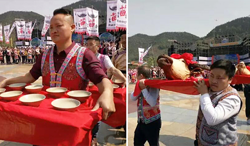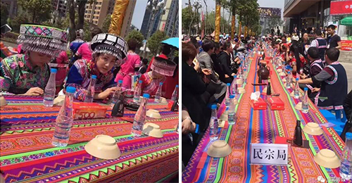 千人廣場舞之后到了中午大餐,吃苗族百米長桌宴!