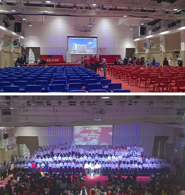 耀華國際學校舉辦的圣誕節大型舞臺活動從方案開展到活動結束,都有爵士龍音響工程師駐場指揮掌控,確保音質音效能充分發揮,達到理想的效果。