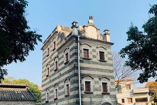 走進小鎮,你會發現小鎮散落著將近50棟類似開平碉堡的華僑樓群,這些都是建于清末民初的老建筑,看上去就是一個具有歷史感的西洋建筑群。這些碉樓都是在上世紀中期,遠渡重洋的華僑紛紛回鄉買地所建。每座碉樓樓頂建筑最具特色,讓碉堡散發出濃郁的異國風情,窗欞石柱上雕刻著中式圖案,融合了濃厚的華僑文化特色和中西建筑元素。
