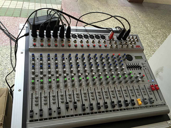 學校操場選用爵士龍專業舞臺音響作為擴聲系統,4只LAB-610雙十寸音箱為主擴音箱,2只WS-218雙十八寸音箱做輔助音箱,2只CU-12單十二寸返聽音箱,搭配功率匹配的MH系列功放,配套使用的周邊設備還包括DSP-1622十六路調音臺,DPA-260A數字處理器,G-980無線話筒,SH-108電源時序器等專業舞臺音響設備。