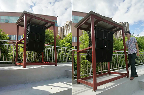 在獲悉學校對音響設備的要求后,工程師在配置舞臺音響系統的時候采用兩串2+1簡易線陣音箱,共四只LAB610加兩只超低音,顧及該線陣音響系統是用于操場上,箱體還做了防水效果。盡心盡責的服務態度也是讓校方非常滿意。