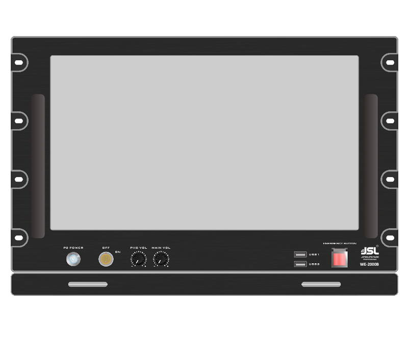 1*總音量電位器,控制后板4*6.35話筒插座音量;2*USB接口;1*消防按鈕;1*抽拉式鍵盤(帶觸摸板、數(shù)字鍵盤);1*17.3寸液晶屏/1920*1080帶觸摸屏