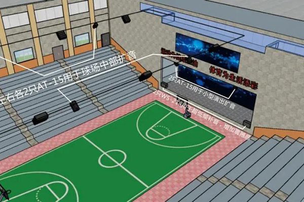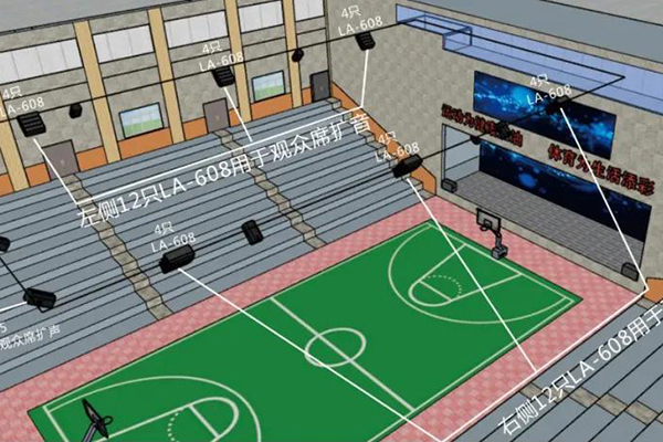體育館左側12只LA、右側12只LA用于左右觀眾席的擴音,后場觀眾席4只AT用于后場觀眾席擴音。