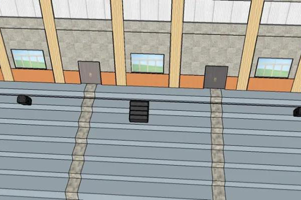 改造后在頂棚安裝空間吸聲體,場館大廳空場時,混響時間的計算值為RT60≈1.70(秒),滿場時,混響時間計算值RT60≈1.50(秒)??紤]到裝飾工程過程中,因為施工出現的“聲損耗值”,不一定能精確到計算值,但基本可以滿足體育館的聲學標準要求。爵士龍團隊在焦作一中體育館擴聲改造后于頂棚布置的吸音體屬于高密度玻璃纖維棉鋁合金包邊材質,根據聲學原理精致加工而成,滿足建筑學美觀的同時擁有較寬的吸聲頻帶,能充分發揮材料的吸聲作用,聲音傳播接近零反射,擴聲優化效果明顯。